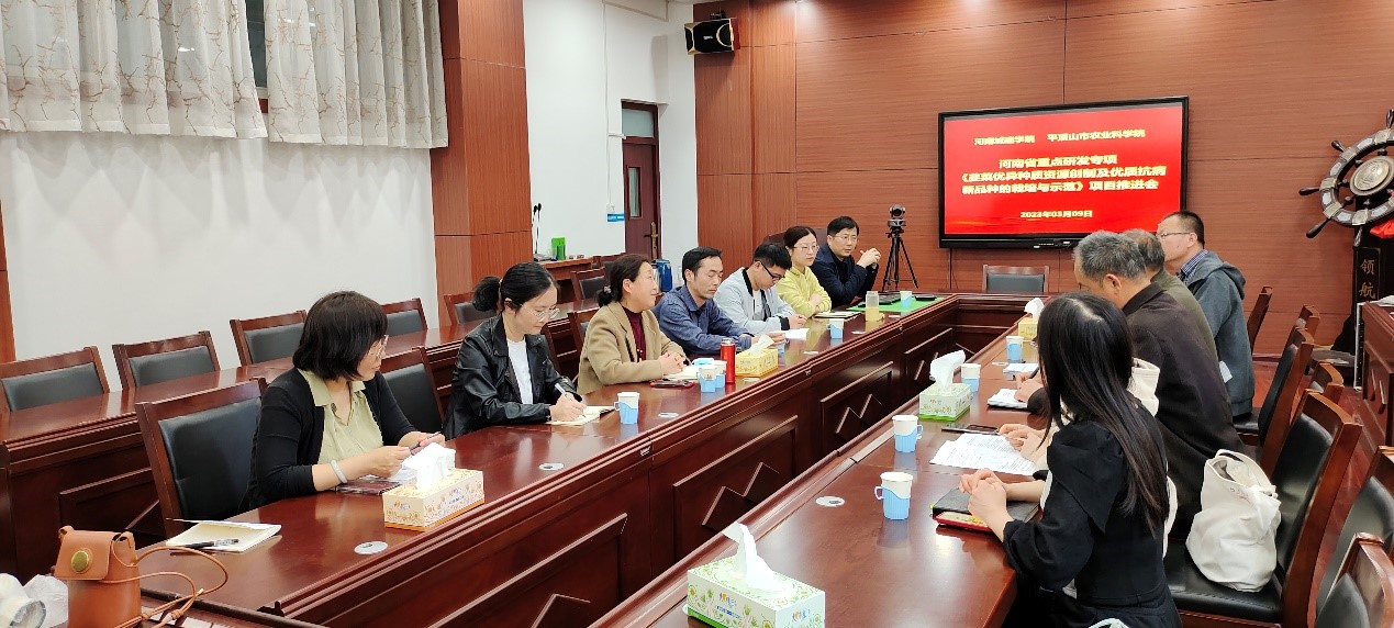 beat365官方登录张华敏老师代表beat365官方登录团队就承担的课题进行了汇报,主要承担韭菜风味浓郁种质资源的筛选及风味物质形成的分子机理研究,嗜线虫肠杆菌活菌制剂防治韭菜灰霉病技术,不同倍性韭菜种质资源的筛选与鉴定等相关研究,目前项目进展顺利,已经取得了部分阶段性成果,包括在投文章2篇,申请专利2项,出版专著1部。市农科院李延龙老师代表农科院课题组进行了汇报,主要开展了园艺地布防治韭菜灰霉病效果研究、多态性SSR标记筛选、杂交组合选育优良品种等方面研究,项目有序开展,已经取得了部分阶段性成果,包括已经组配50个杂交组合,初步筛选出多株优良表型后代,正在进行深入分析鉴定。市农科院尹守恒副经理对项目工作作了阶段性总结,对标绩效目标本课题已经完成三分之一的工作,项目组有信心能够在项目执行期内圆满完成任务。beat365官方登录李冰冰经理就项目管理与保障机制提出建议,建立良好的项目进展交流与共享机制,加强成果管理,规范经费使用管理。项目组全体成员进行了深入沟通与交流,并对下一步的研究任务进行计划和分工,明确了项目交流共享机制及经费管理机制。本次推进会为河南省重点研发专项深入开展建立了良好保障机制,确保高标准高质量完成项目任务。