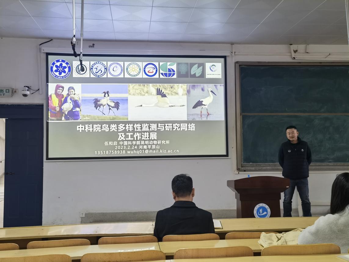 杨晓君研究员做了“中国绿孔雀及其保护”的学术报告,伍和启博士做“中科院鸟类生物多样性监测与研究网络”的学术报告,与会员工和教师就绿孔雀研究及保护和鸟类卫星跟踪问题进行了深度的交流。