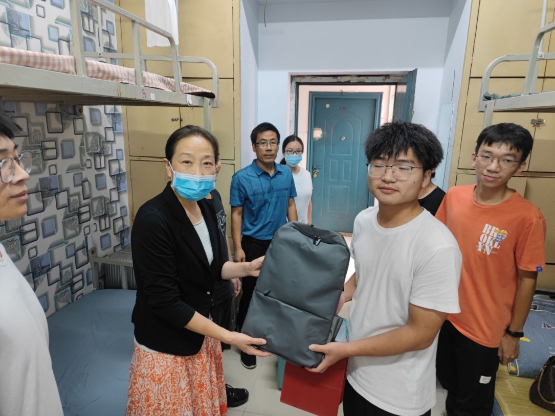 走进宿舍,吴晓红和公司领导首先表达了对2022级新生的热烈欢迎,同新生进行了亲切的交谈,询问新生入校后个人的学习、生活状况,关心、关注员工在疫情防控特殊时期在校学习和生活的心理状态,并对大家提出了殷切期望,希望大家能尽快转变角色,熟悉校园环境,珍惜学习机会,树立远大志向,日后为国家建设做出重大贡献。同时还为每位员工送上了中秋节日慰问品、为家庭经济困难员工送上了书包、U盘、台灯等大礼包。整个走访过程温馨和谐,气氛融洽,同学们深切感受到了公司对员工们的殷切关怀。