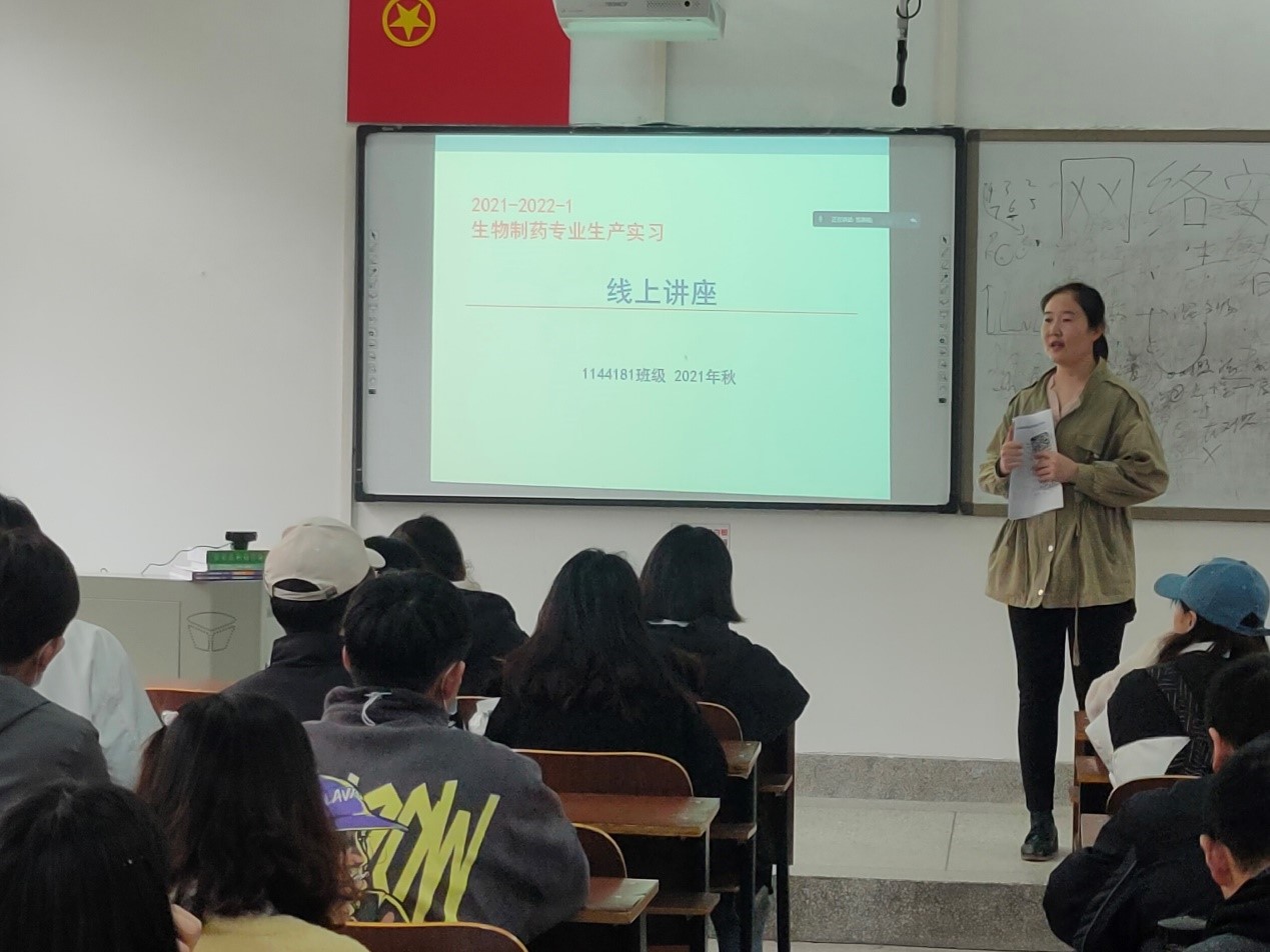 (通讯员 黄云鹏)受新冠肺炎疫情的影响,10月至11月初,生产实习指导教师范燕茹、王艳红和景磊组织员工在6号楼B座211教室,以“云”连线的方式邀请相关医药企业负责人对18及生物制药专业员工开展“云”实习培训。参与讲解人员有联邦制药集团子公司内蒙古联邦动保有限公司技术总监范孟飞、济南朗科医药技术有限公司总经理邵长凯高级工程师和河南豫辰药业股份有限公司技术部部长石艳彩高级工程师。