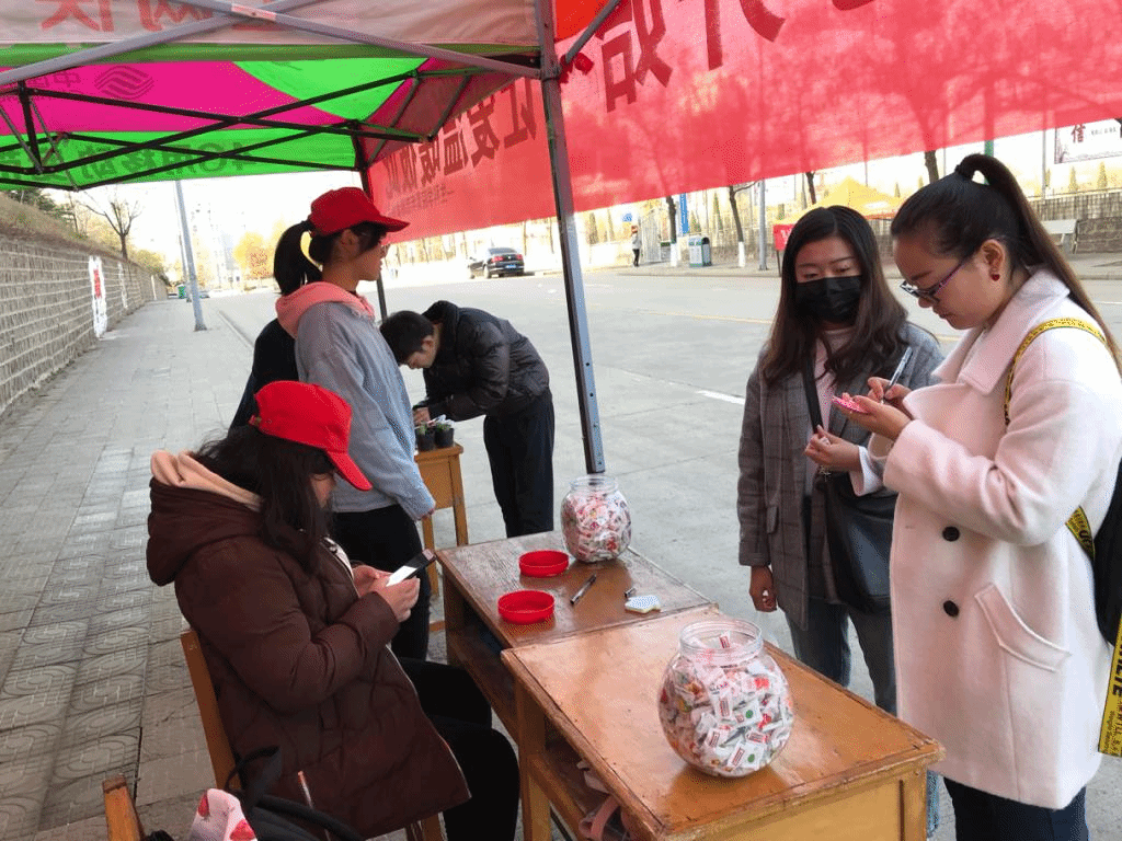 活动前期,青年志愿者协会的干事们准备好便利贴、笔和糖果、盆栽、鲜花等礼品。活动进行过程中,志愿者向路过的同学讲解此次活动的内容并鼓励他们积极参加活动。同学们在彩色便利贴上写下感恩节最想说的话,志愿者为参加活动的同学发放糖果并将便利贴粘贴在展板上。同时有一些积极的同学在视频下展现说出了自己感恩节最想说的话,并获得了小盆栽或鲜花等礼品。