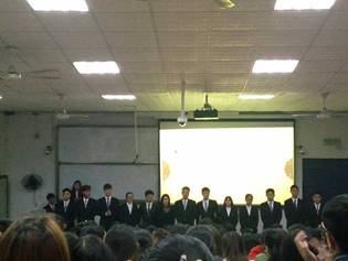 (全体师生起立奏国歌)