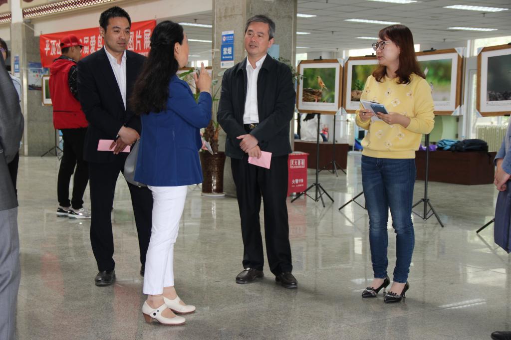 王召东董事长在观看鸟类图片展览的过程中,和beat365官方登录的专业教授进行了深入交流,就白龟湖湿地的发展现状、目前鸟类的生存环境、以及白龟湖当前发展存在的困境等问题与专业人士进行了详谈。