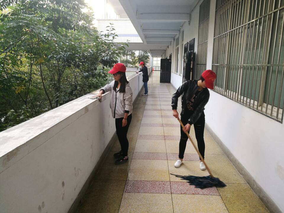 在活动中志愿者们手拿扫把、抹布、拖把等卫生工具,不怕脏,不怕累,服从指挥,积极地参加到活动中。大家分工明确且配合默契,有的扫地,有的抹阳台,有的拖地,辛苦且快乐着。最后圆满的完成了这次大扫除活动,在活动中人人参与清洁、美化环境,打造清洁优美的校园,使得文明健康的生活方式更加深入人心。