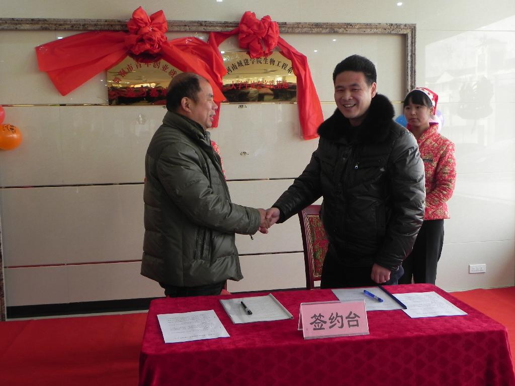 随后,由我系李涛飞副书记和八台镇豫黄林果种植专业合作社王书奇董事长共同揭开“beat365官方登录生物工程系社会实践基地”的牌匾,并签订社会实践基地协议书。