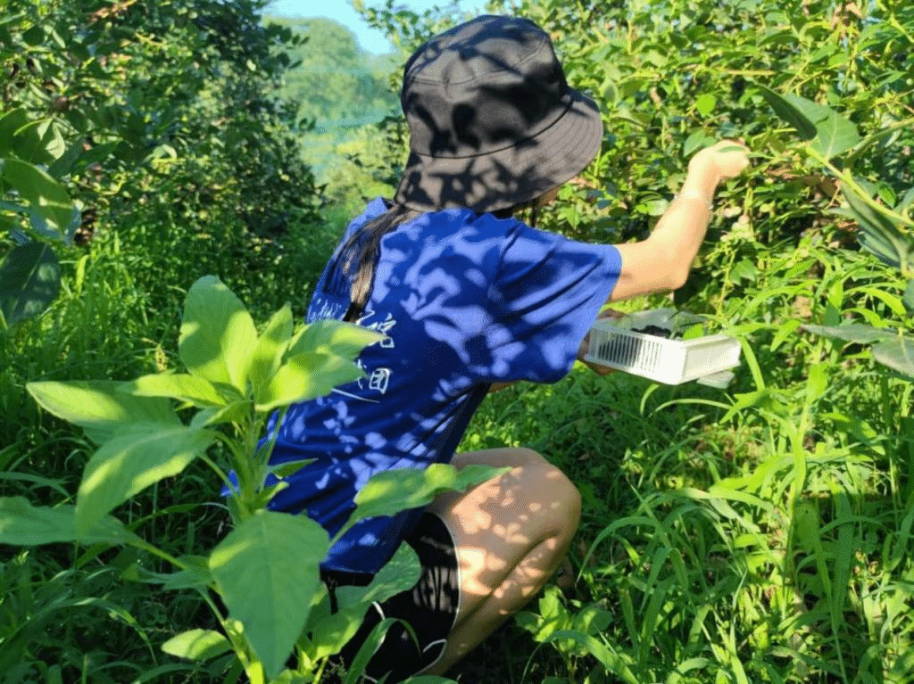 实践队成员深入田间地头与当地种植户一起进行采摘、分装、夏剪等各个环节的农业实践操作。并以搬走岭村的农作物种植情况以及蓝莓产业的发展情况为中心,进行实地考察、访谈调研,助力乡村蓝莓产业发展。