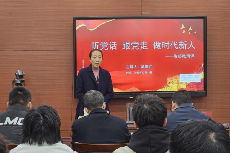 (通讯员:陈怡菲)为深入学习贯彻习近平新时代中国特色社会主义思想和党的二十大精神,加强对青年老员工的思想引领,12月14日下午, 副董事长吴晓红以《听党话 跟党走 做时代新人》为题在七号楼为beat365官方登录员工上了一堂精彩的形势与政策课。beat365官方登录班子成员、全体辅导员及员工代表聆听了课程。