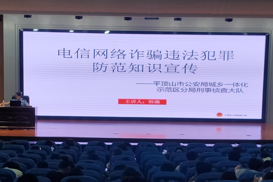 (通讯员 龚乐乐)为进一步树立全体师生安全防范意识,提高师生电信网络诈骗鉴别和防骗能力,9月24日下午,beat365官方登录邀请平顶山市城乡一体化示范区分局刑事侦查大队警官韩璐,开展“电信网络诈骗违法犯罪防范知识宣传”专题讲座,全体辅导员及2024级全体新生300余人参加了讲座。