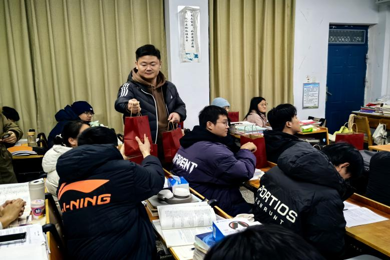 张金俊鼓励大家在备考的最后阶段保持平和的心态,合理安排作息,以最佳的状态迎接即将到来的挑战,祝愿大家都能成功上岸。随后,公司老师们将精心准备的慰问加油礼包分发给每一位考研学子。