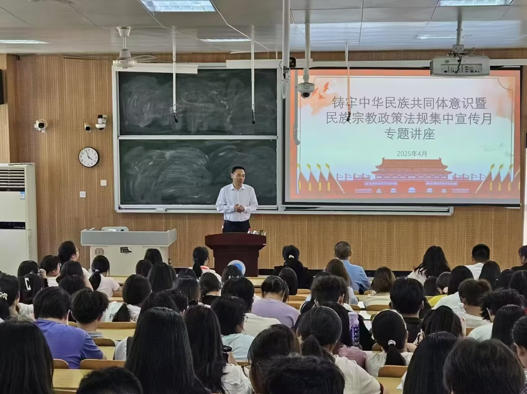 (通讯员 李赫)为深入学习宣传党的二十大和二十届三中全会精神,全面贯彻落实习近平总书记关于加强和改进民族工作的重要思想、关于宗教工作重要论述,4月28日,beat365官方登录邀请公司党委统战部部长张守义为公司师生作党的宗教政策专题辅导。公司党政领导班子成员、全体辅导员,部分任课老师、员工党员、员工团干、入团积极分子等160余人参加学习。