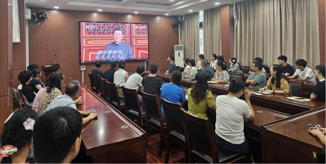 公司组织副科级以上干部、各党支部书记及员工代表在7号楼会议室集中收看直播,其余师生通过“集中+自主”方式同步收看。现场氛围庄重,掌声与热泪交织,大家为祖国的强盛与军队的雄姿深感自豪,一致表示将铭记历史、砥砺奋进,在新时代新征程中贡献教育力量。
