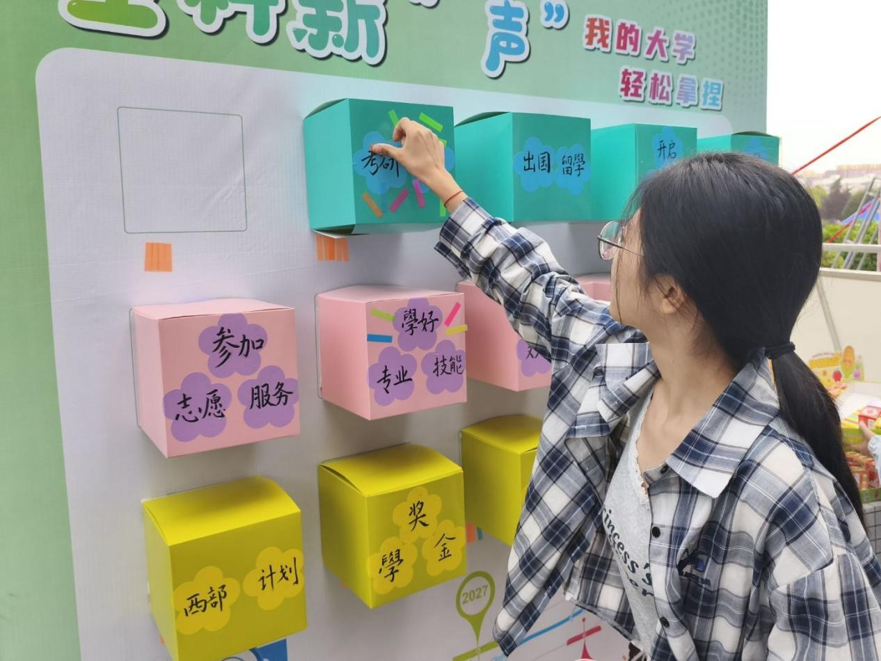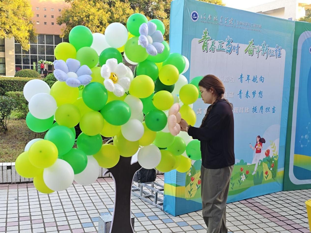 活动以“播种希望、寄语未来”为主线,设置了三大特色活动。一是发放“种子盲盒”,未知的植物种子象征着生命的无限可能,新生踊跃领取并参与种植,激发了同学们对成长过程的期待与责任感;二是设置“迎新树”,以绿白相间的气球与笑脸图案营造清新活泼的视觉氛围,传递beat365官方登录全体师生对新生的热烈欢迎;三是设置“心愿墙”,心愿墙涵盖学业、生活、职业等方面的十五类标签,成为新生梦想打卡集中地。