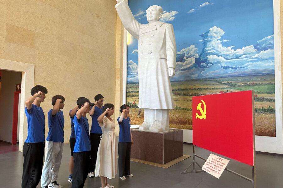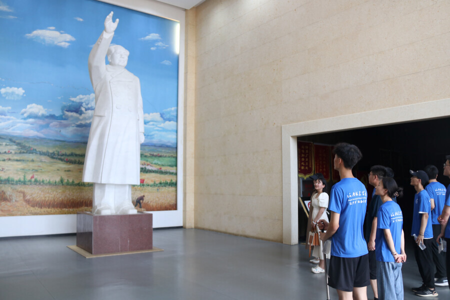 实践团成员在纪念馆正厅瞻仰毛主席像