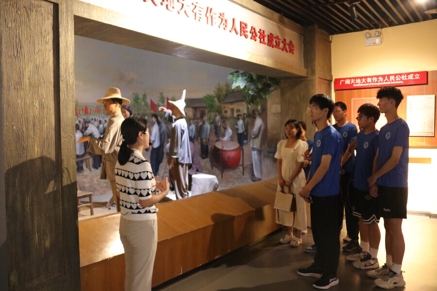 讲解员向实践团讲解广阔天地大有作为人民公社成立大会的历史意义及背景