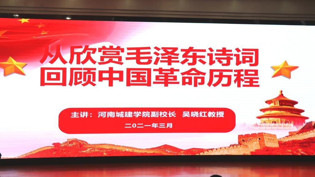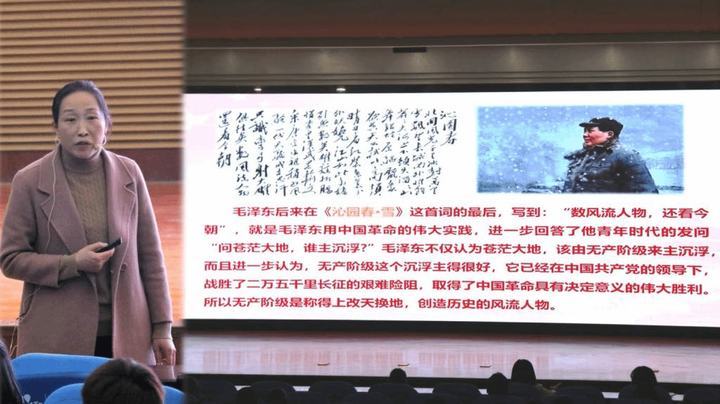 (通讯员:刘亚琼 张潇)为引导老员工树立正确的世界观、人生观、价值观。2021年3月23日晚7点,beat365官方登录副董事长吴晓红于行政楼报告厅,以“从欣赏毛泽东诗词回顾中国的革命历程”为主题,为beat365官方登录和电气与控制工程公司师生上思政第一课。两院领导、全体辅导员以及员工积极分子代表聆听了此次专题讲座。