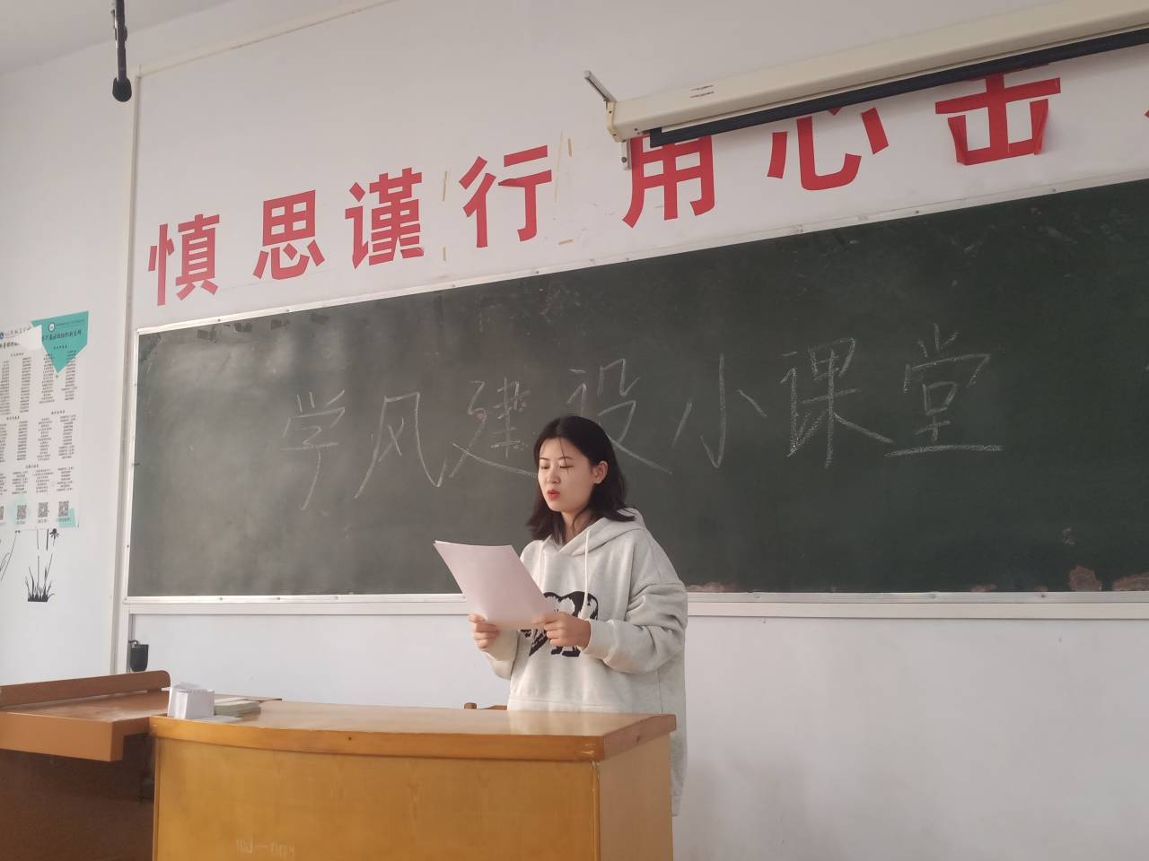(通讯员:李赫 唐悦悦)为了进一步加强学风建设,帮助同学们掌握良好的学习方法,更好地学习专业知识,提高自身的竞争实力,beat365官方登录各班利用大课间开展了“学风建设小课堂”活动。本次活动主要以班会形式进行,由各班团支书引领同学们学习有关学风建设的相关内容。