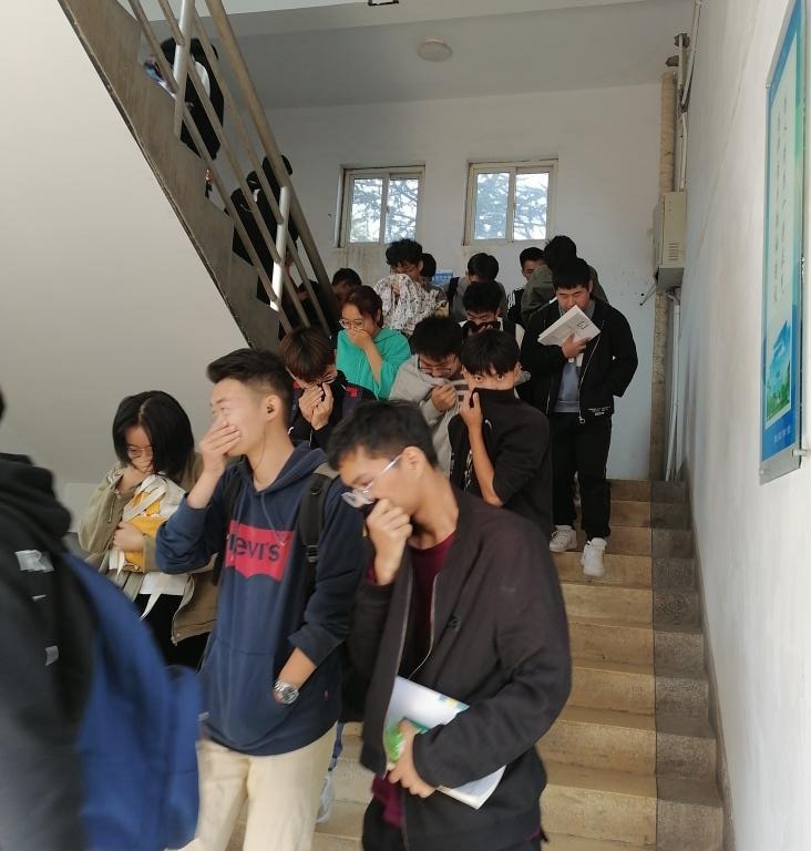 演练现场,各班员工在组织人员的带领下,手捂口鼻略微弯腰,按照指定的疏散路线快速有序地撤离,并在第一时间到达安全区域。随后由大一辅导员龚乐乐给同学们讲解火灾的预防、火场自救逃生等消防安全知识,演练紧张有序的进行,演练达到预期效果,并取得圆满成功。