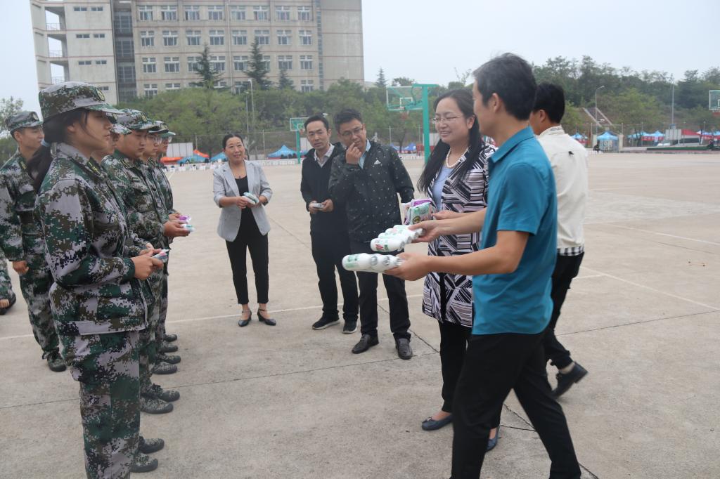 (通讯员 李赫)当中秋遇见军训,第一次离开父母的新生无比想家;当收到月饼搭档娃哈哈的组合礼品,军训中的新生们顿时感受到了来自beat365官方登录大家庭的温暖。9月12日上午10时许,公司领导班子带领全体学工人员到山顶操场对公司进行军事训练的新生进行节日慰问。