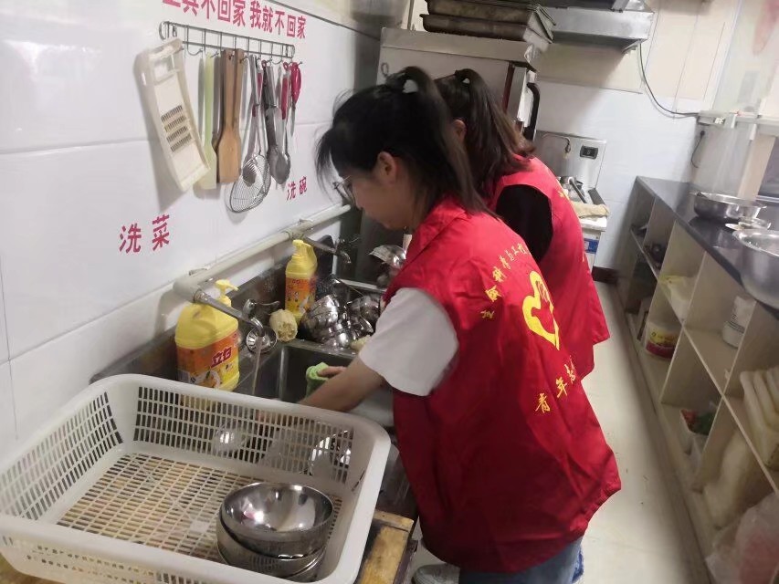 志愿者清洗餐具